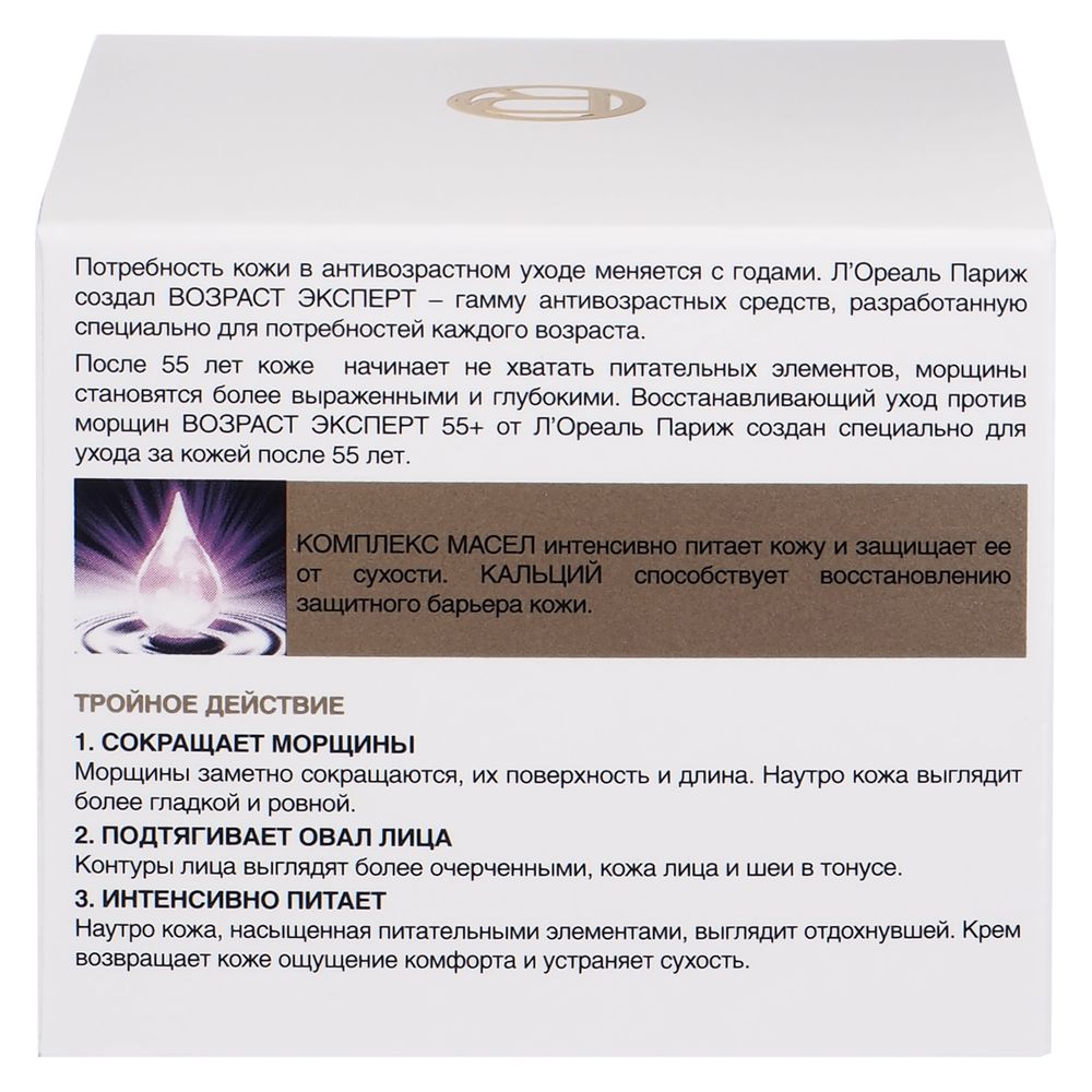 L'Oreal Paris Ночной антивозрастной крем для лица "Возраст эксперт 55+" против морщин, восстанавливающий, 50 мл