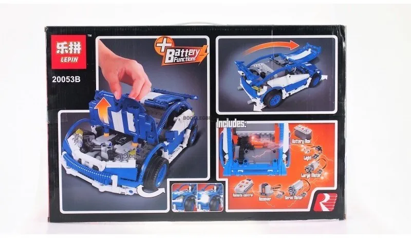 - машина из набора 20053B Lepin The Hatchback Type-R (Technic 6604) обладает мощным электродвигателем, позволяющим очень быстро продвигаться по трассе;