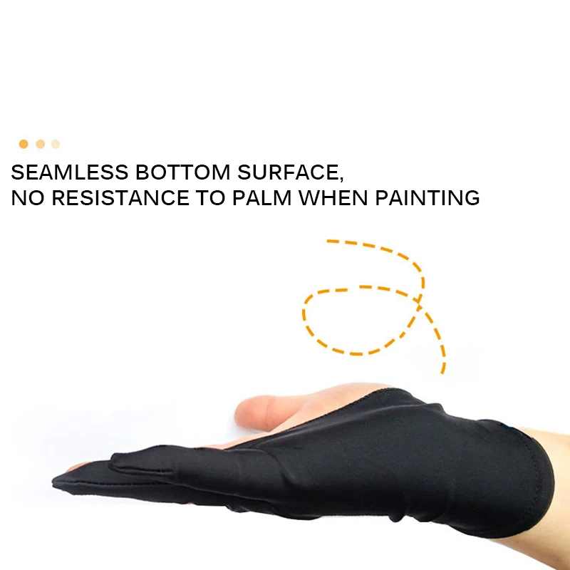 Перчатка с двумя пальцами может покрыть ваш безымянный палец, маленький палец и половину ладони, который обладает хорошей защитой от загрязнения, идеально подходит для масляной живописи, акварели, гуаши, традиционной китайской живописи и эскиза.