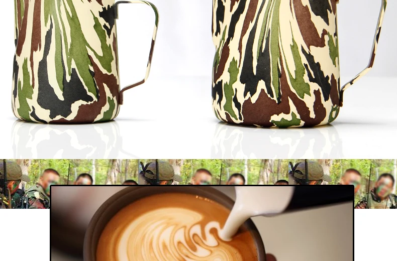 Отзывы о Бариста кувшин камуфляж зеленый латте искусство молочный из нержавеющей стали