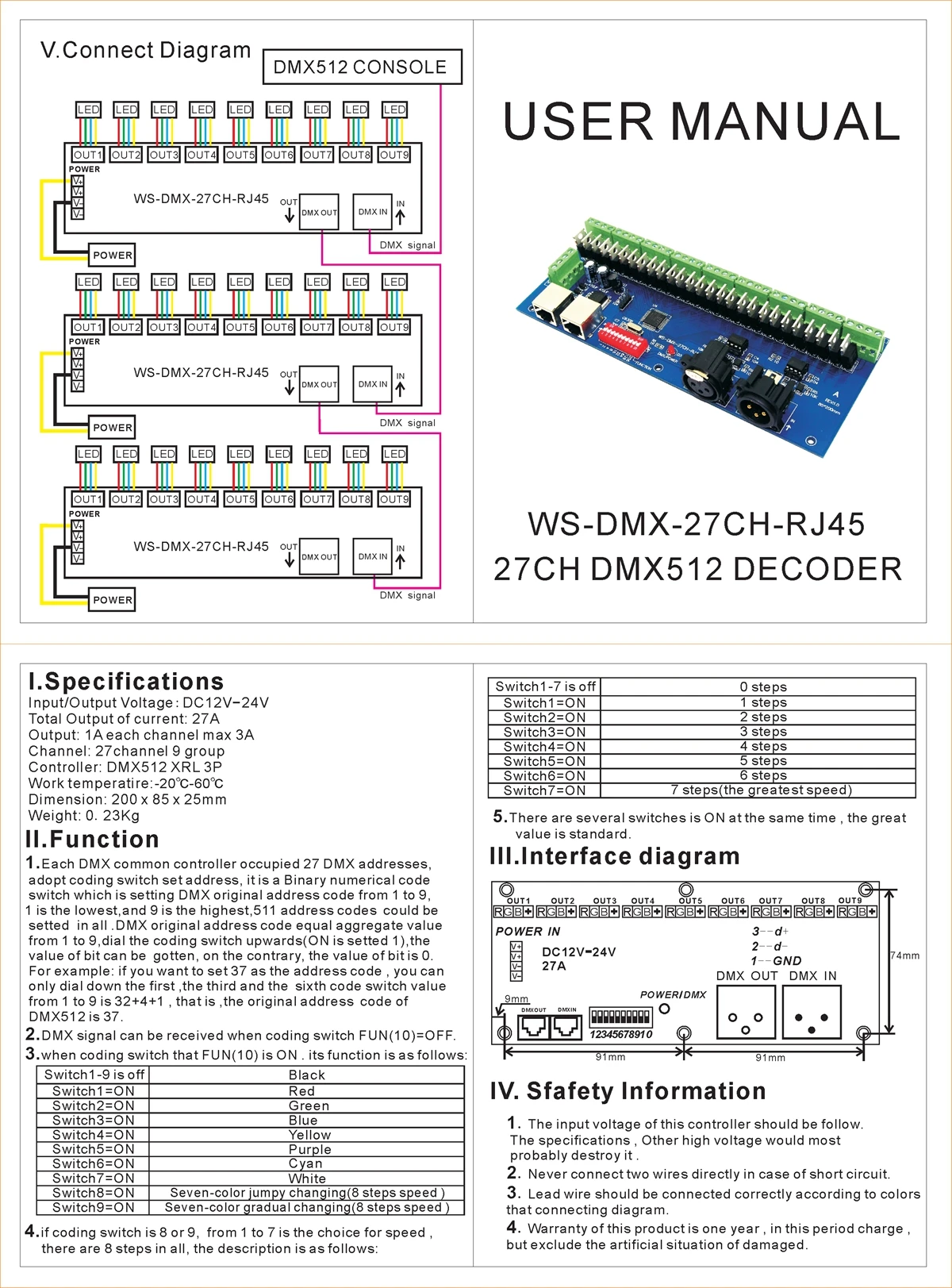 Отзывы о 27CH dmx512 Контроллер каждая Выходная частота 10 кГц 27 каналов dmx диммер декодер