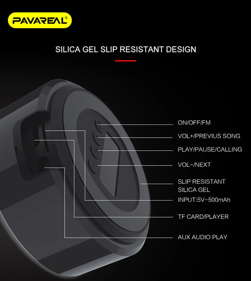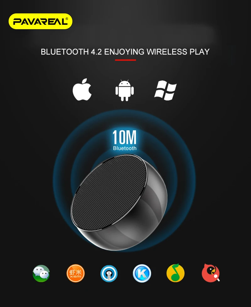 ●Brand: PAVAREAL ●Model number:PA-BS55 ●Item: subwoofer bluetooth speaker ●Color: Gold/Tarnish ●Product size:79* 44mm ●Bluetooth version:V4.2 ●Working distance: 10M ●Charging voltage:5V/500mAh ●Talking time: 3h ●charging time:2.5h . Battery capacity:37V 500mAh ●Working voltage:3.6V-4.2V . Executive standard:GB/4943.1-201 1