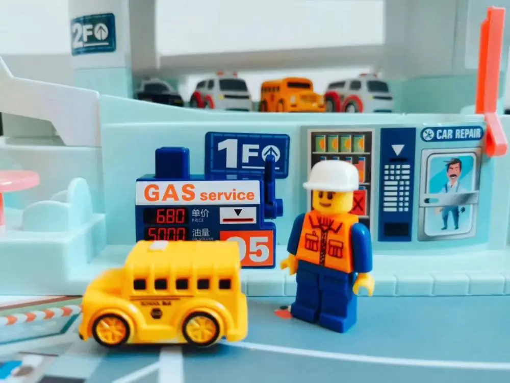 Эту игрушку с подсветкой, Парковочное здание можно играть вручную или электрическим