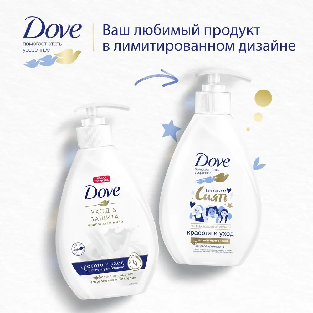 Регулярный уход за руками сохраняет молодость и упругость кожи. Выберите жидкое крем-мыло Dove в новой формуле*, которое бережно очистит ваши руки и подарит им шелковистость. Выполняя очищение кожи, оно интенсивно смягчает, возвращает гладкость и упругость.