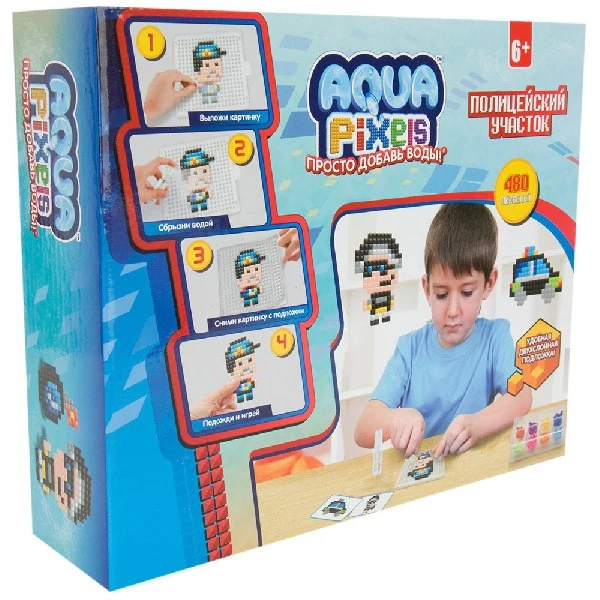 Волшебный набор для творчества Aqua pixels - настоящая магия у вас дома Просто выложите плоскую или объемную фигурку из волшебных бусин на специальной подложке, сбрызните водой и немного подождите Бусины волшебным образом соединятся и фигурку можно использовать в качестве декора или играть с ней. Воспользуйтесь подсказками, собирая узор на предложенных трафаретах или создайте свою собственную уникальную поделку - вы ограничены только своим воображением
