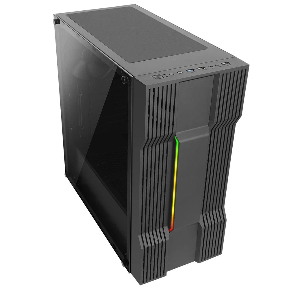Компьютерный корпус формата Mid-Еower Cronos 610S с вертикальной RGB подсветкой передней панели и предустановленным задним вентилятором 140 мм.