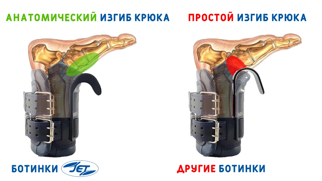 Анатомическая форма ботинок плотно облегает щиколотку ноки максимально повторяя ее изгибы и