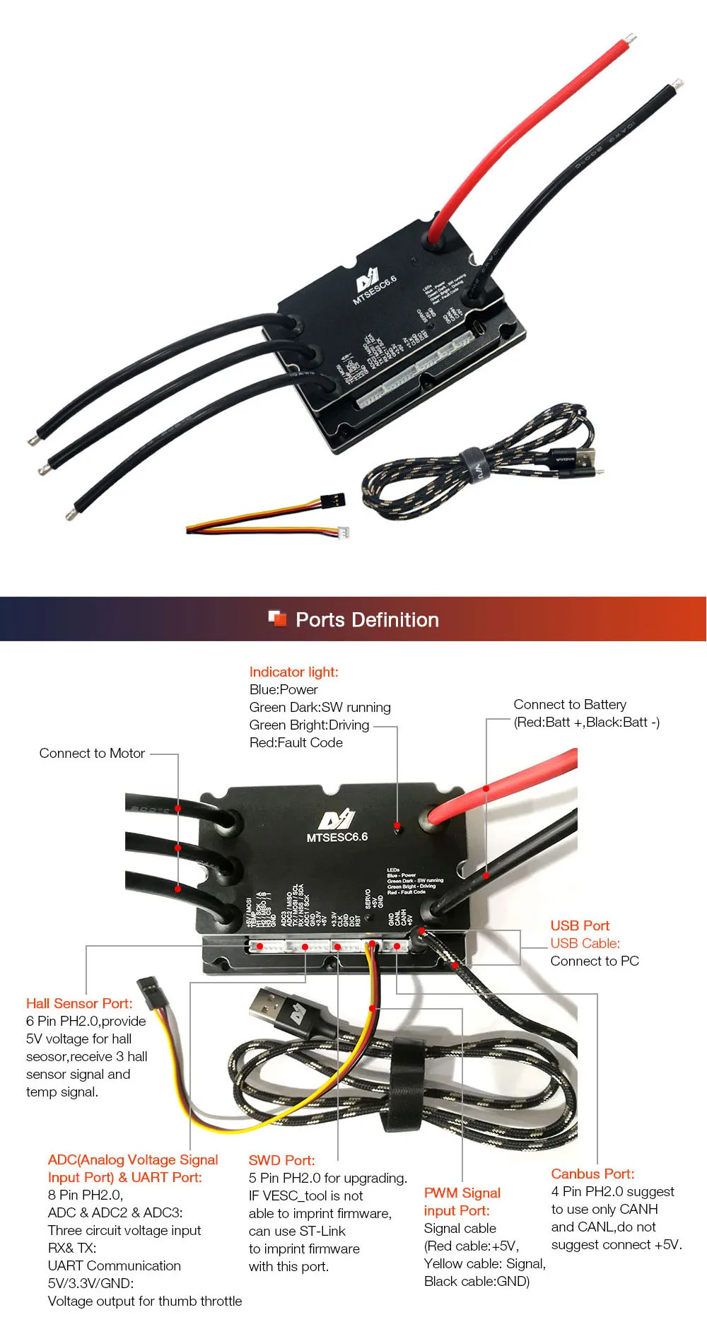 Информация о продукте:Продукт 1: контроллер на основе Maytech V1 200A VESC6.0На основе оборудования VESC6.0