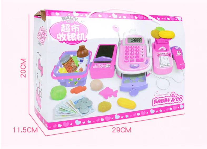 Посылка обычной версии: (без оригинальной коробки) . 1 кассовый аппарат . 1 x корзина для покупок . 2 монеты (12 штук за один) . 1 x бутылки кока-колы (3*3*7,5 см) . 1 x бутылки из-под молока, (3,5*3,5*7,5 см) . 1 x кукурузное масло бутылка (4*2,5*7 см) . 1 x бутылка для кетчупа (3,5*2*7,5 см) . 1 x рыба (7*5*2 см) . 1 х Can (3,5*3,5*5 см) 7. Отделение для банкнот (7*3,7 см) . 1 x банковской карты (8,7*5,5 см) . 1 x ключ (3,5*2,7 см) . 1 х капуста (5*5*3 см) . 1 x картофеля (5,5*3,5*3 см) . 1 x кукурузы (9,5*2,5*2,5 см) . 1 х яйцо (5*3,5*3,5 см) . 1 сосиска (6*3*1 см) Требования к батарее: Требуется 2 батарейки АА (Не входит в комплект)