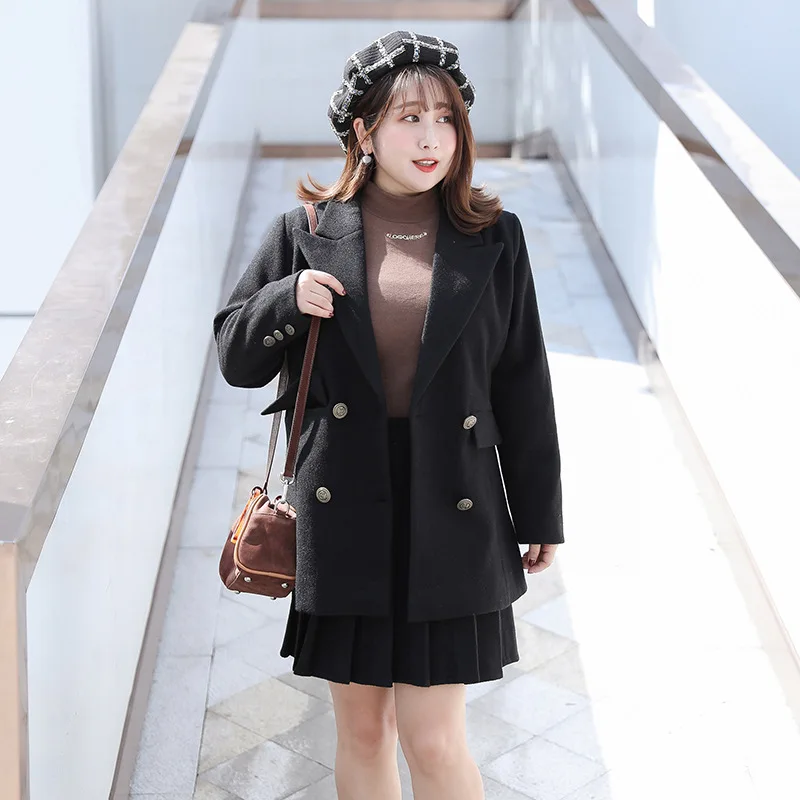 Отзывы о Женские костюмы с юбкой весом 100 кг черное шерстяное пальто плиссированная юбка