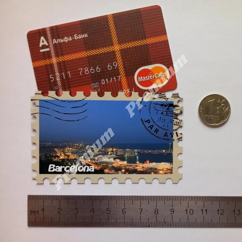 Виниловый магнит «Барселона» Испания размер 58x95 мм, Сувенирный виниловый магнит Стилизация под почтовую марку.