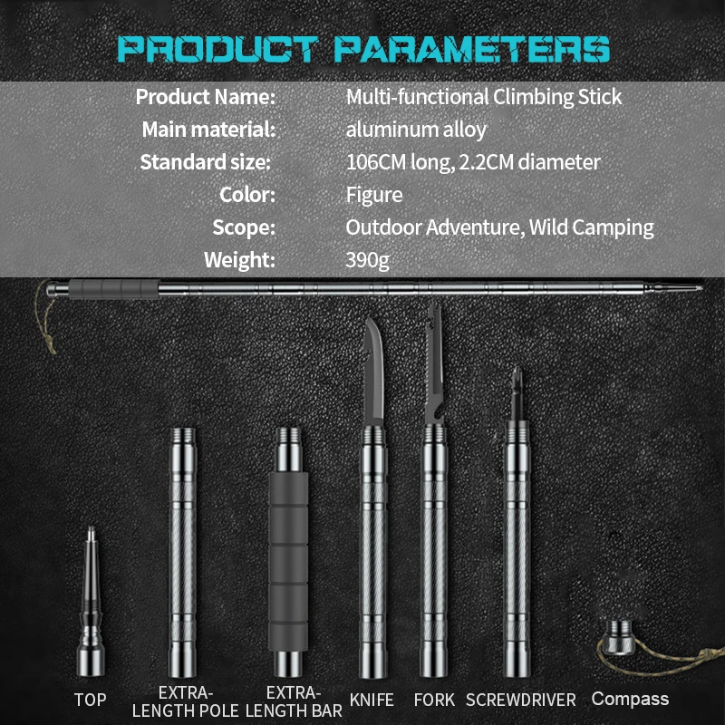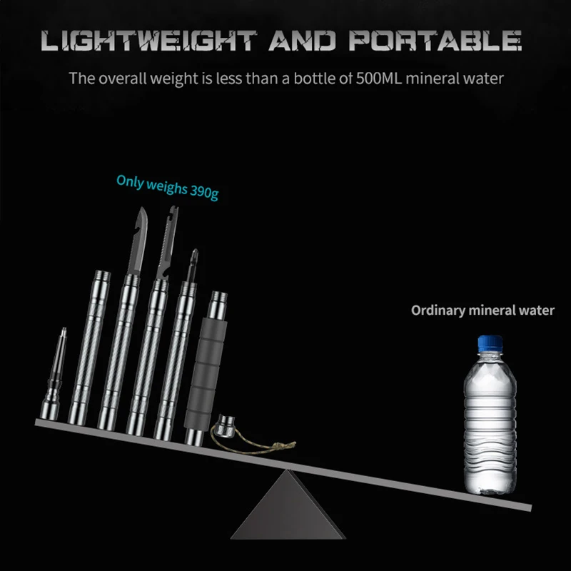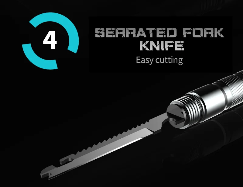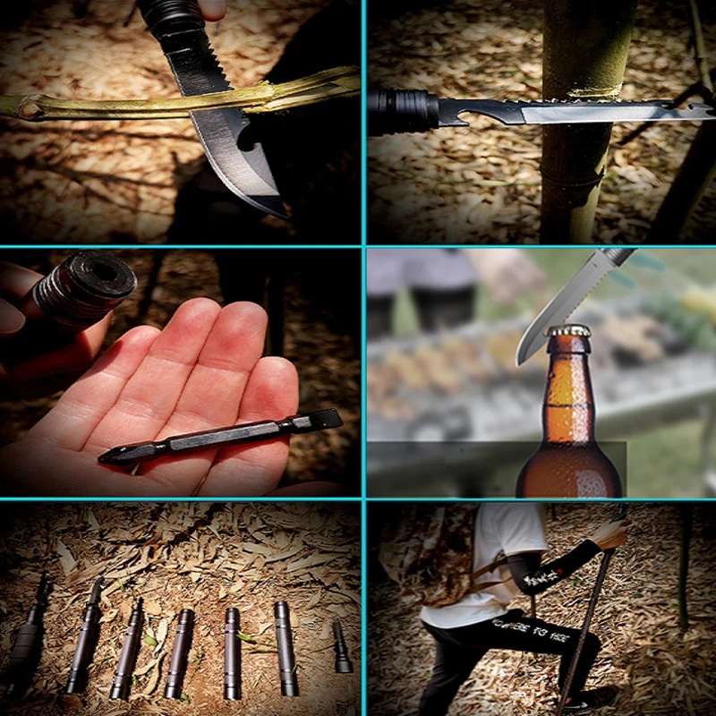 5. Компонент: верх + удлинитель + тактический нож + вилка нож + отвертка + компас