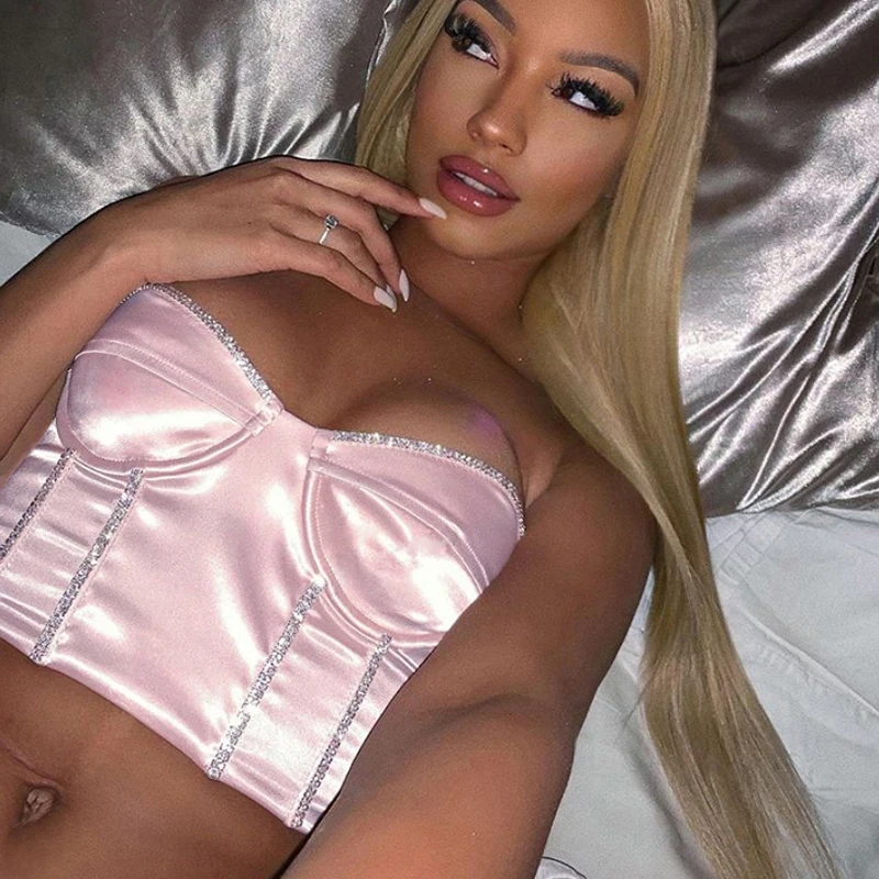 RuiLee Модный летний сексуальный топик хипстер шик глубокий v-образный вырез атласный клуб с открытыми плечами бриллиантовый инкрустированный бюстье укороченный Топ для женщин