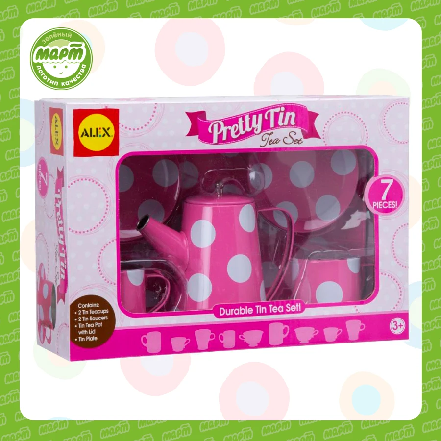 Отзывы о Набор детский Alex Чайный сервиз с подносом розовый в горошек металл 7 предметов от