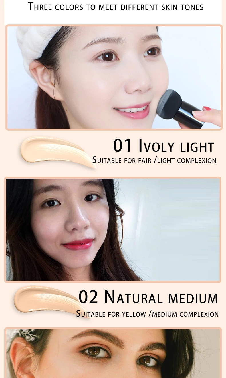 2. Цвет смешивался много раз и тестировался в соответствии с разным тоном кожи, подходит для разных возрастных групп, подходит для лица и консилер для тела