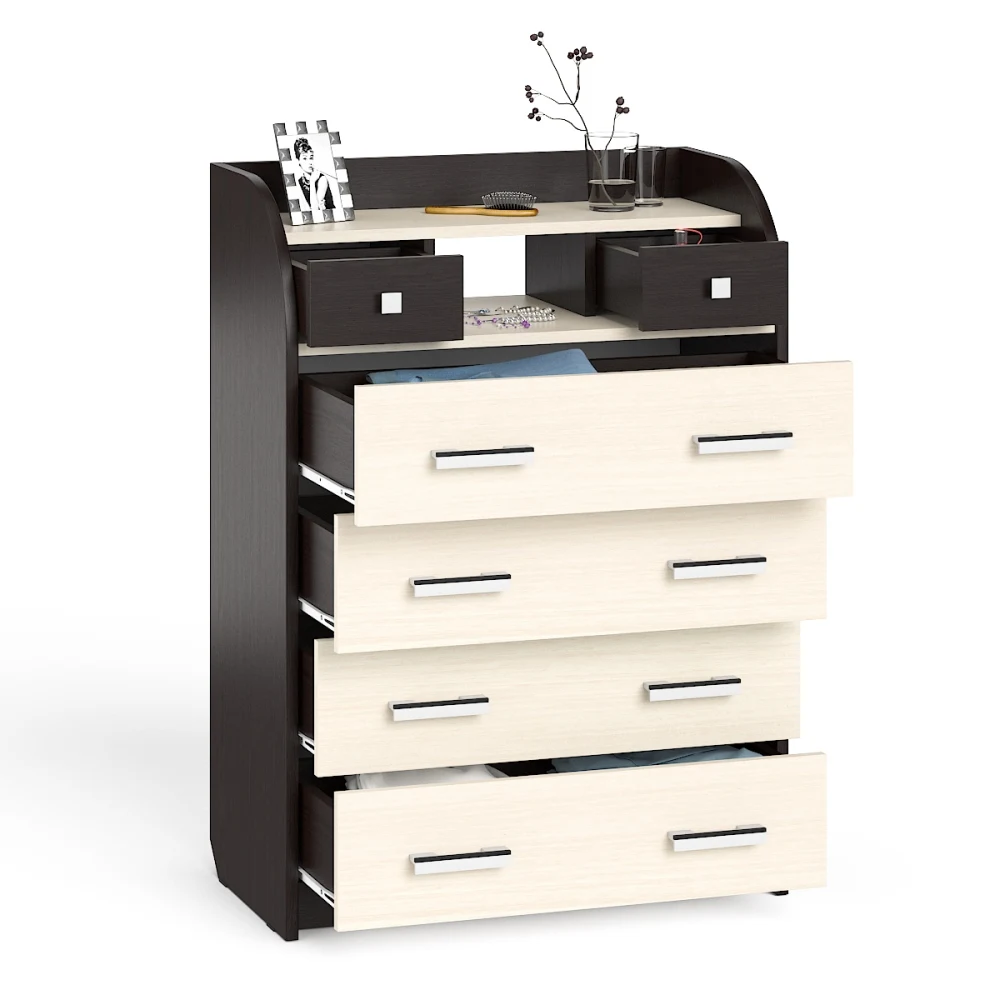 Отзывы о Комод Мебель 24 4 больших ящика 2 ящичка и полочка сверху венге/дуб |