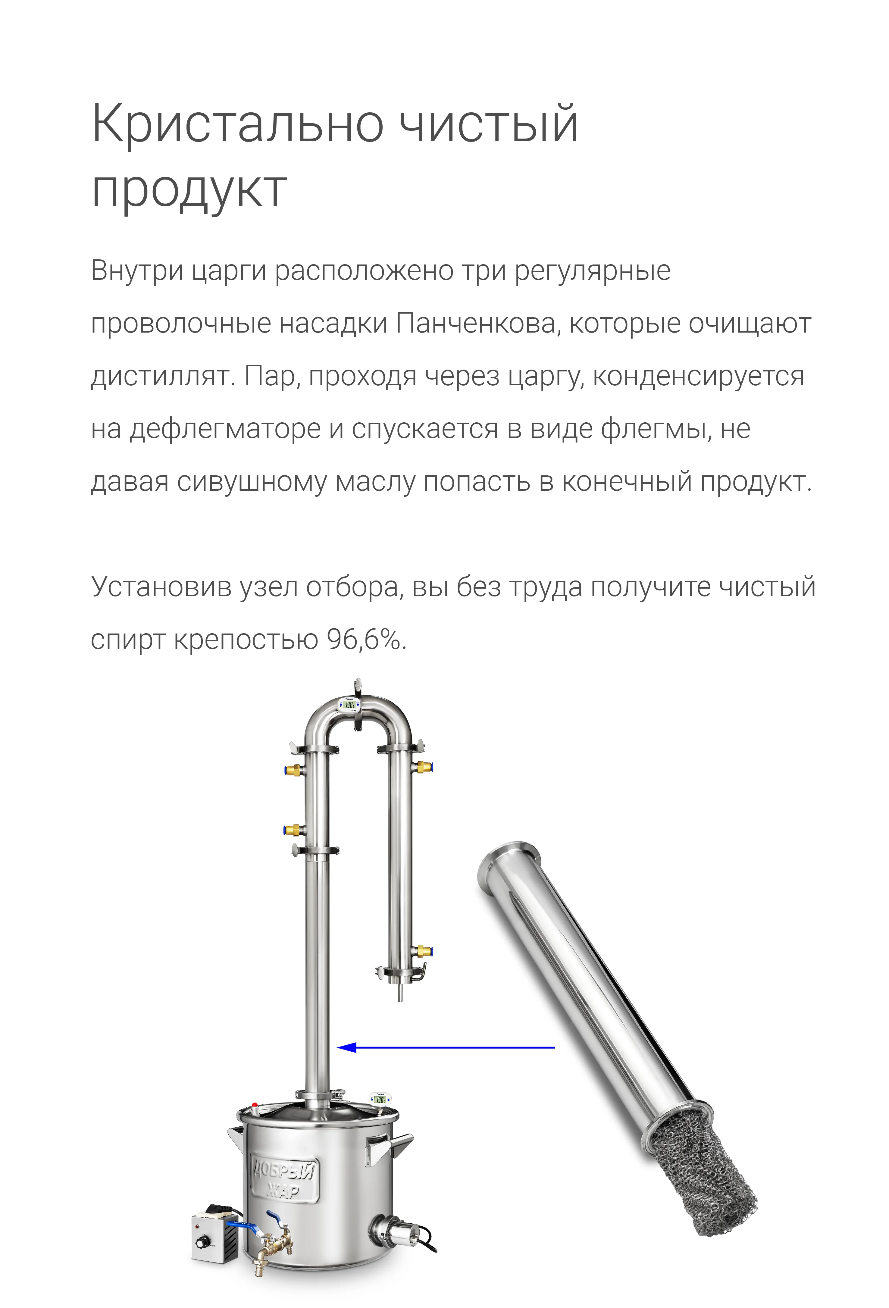 Самогонный аппарат АБСОЛЮТ незаменим при приготовлении домашнего авторского алкоголя. С его помощью вы приготовите кристально чистый продукт премиального качества крепостью более 96°.