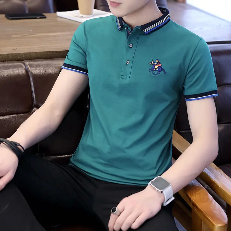 Мужские модные поло с вышивкой, хлопковые рубашки Homme с коротким рукавом, тонкая работа, деловые топы, повседневный стиль, большие размеры от M до 4XL
