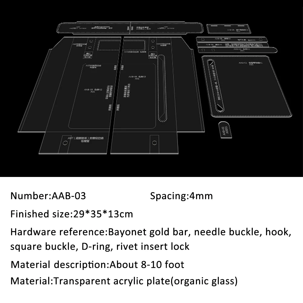 Акрил тяжелее крафт-бумаги, и его нелегко скользить при рисовании линий. Из прозрачного материала можно увидеть кожаный материал, чтобы избежать порезов. Его можно использовать повторно. Отверстия для сшивания акрилового рисунка представляют собой круглые отверстия для сшивания с расстоянием 4 мм.