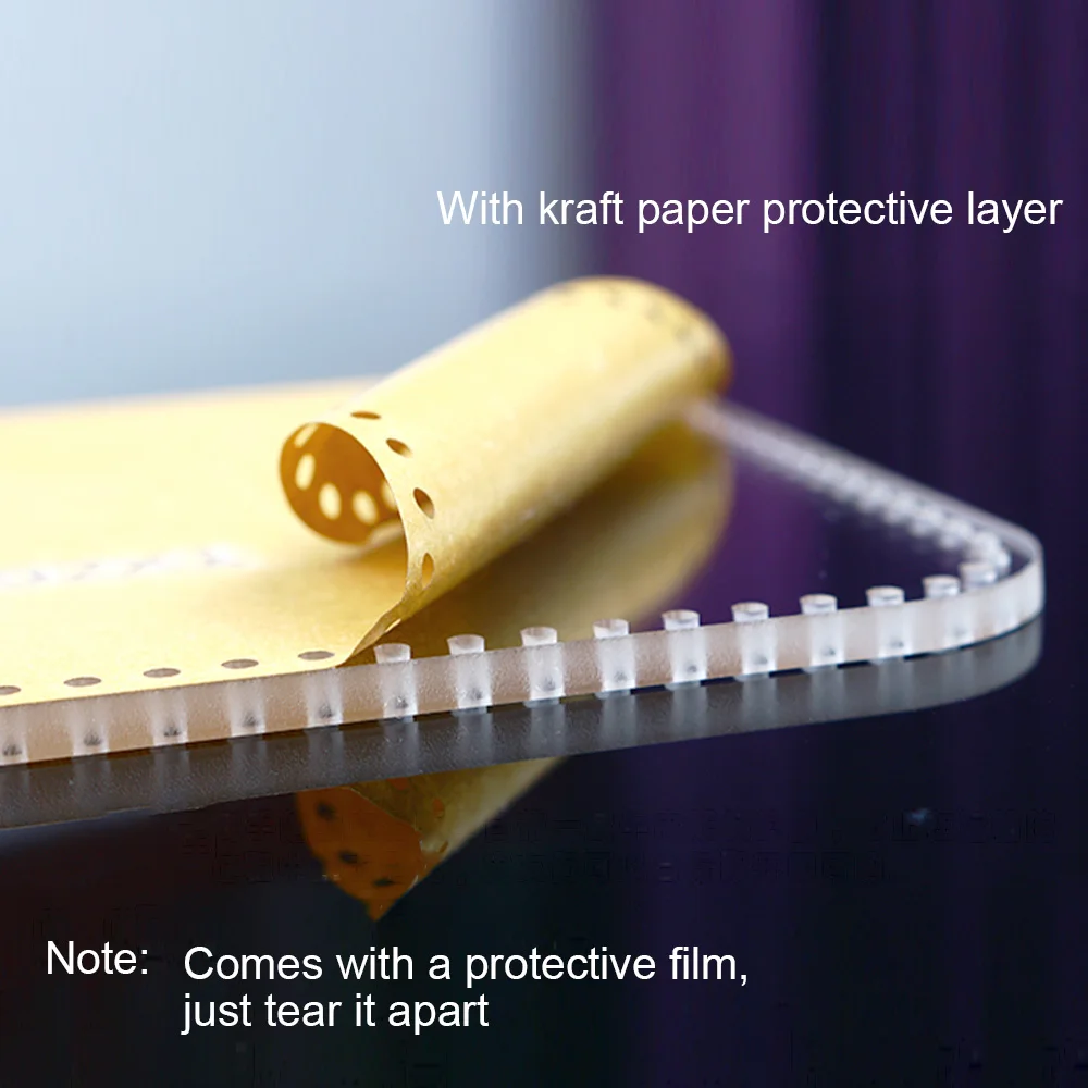 Акрил тяжелее крафт-бумаги и не легко скользить при рисовании линий. Прозрачный материал может видеть кожаный материал, чтобы избежать ошибок в резке. Его можно использовать повторно. Прошитые отверстия акрилового узора являются круглыми простроченными отверстиями с интервалом 4 мм.