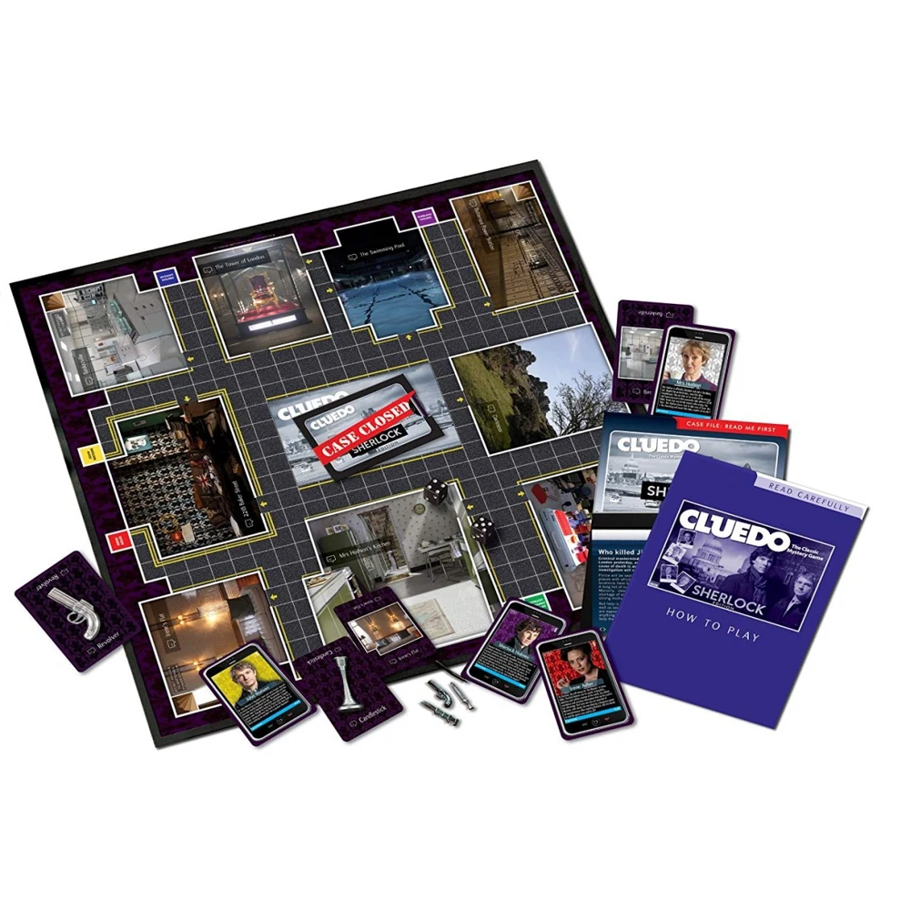 CLUEDO Шерлок — новая версия знаменитой детективной игры, теперь по мотивам популярного сериала SHERLOCK. В этой лицензионной версии игры адаптированы все компоненты, начиная от игрового поля, заканчивая карточками и орудиями убийства.