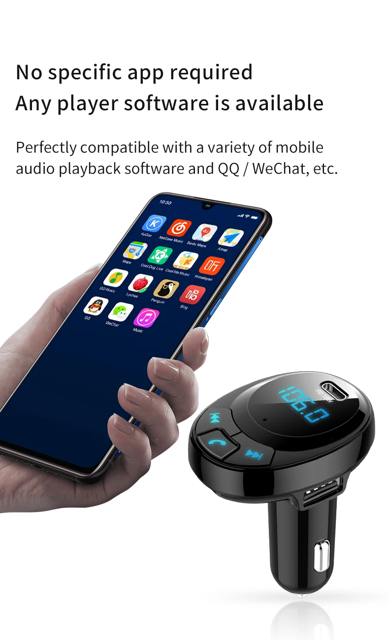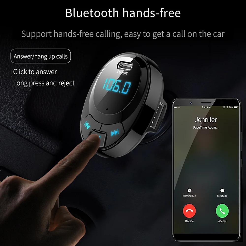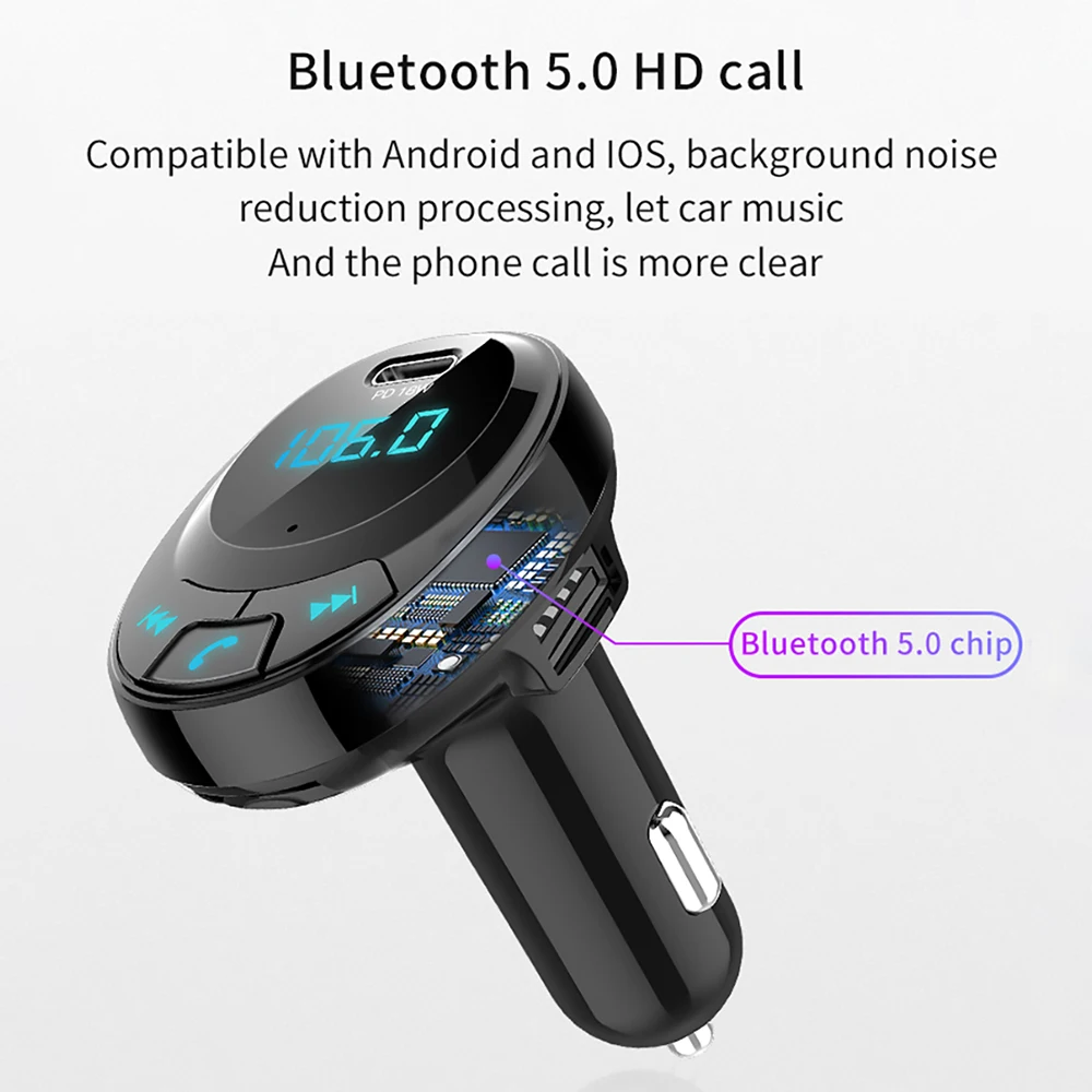 Автомобильный MP3 плеер Зарядное устройство Hands-free fm-передатчик Bluetooth 5,0 PD 18W автомобильный комплект LCD Dual USB Автомобильное зарядное устройство для телефона huawei honor iPhone