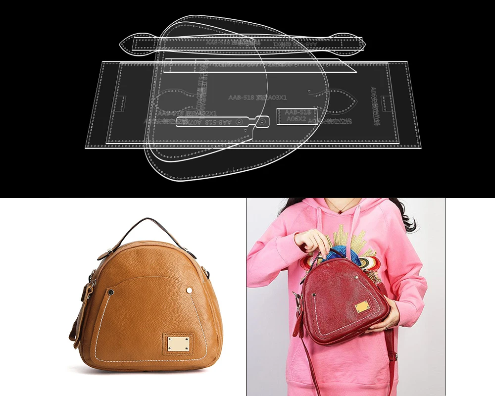 Acrylic is heavier than kraft paper, and it is not easy to slip when drawing lines. The transparent material can see the leather material to avoid cutting errors. It can be reused. The stitching holes of the acrylic pattern are circular stitching holes with a spacing of 4mm.