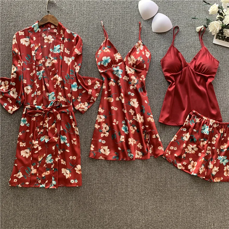 Отзывы о Женская ночная рубашка SIMISI костюм из 4 предметов комплект одежды с цветочным