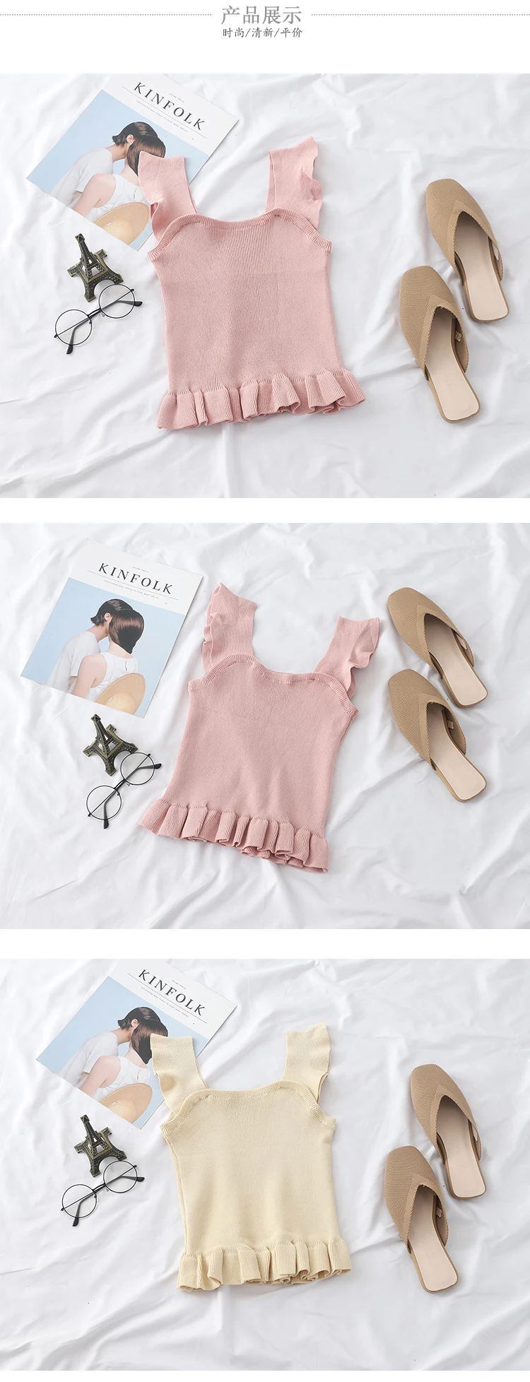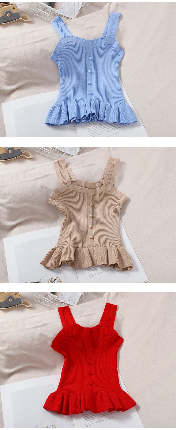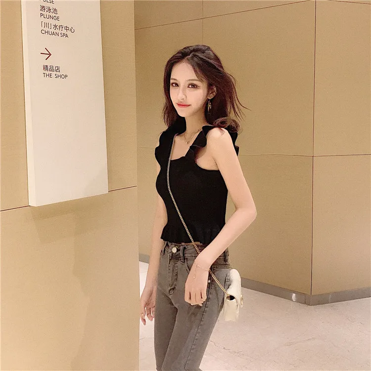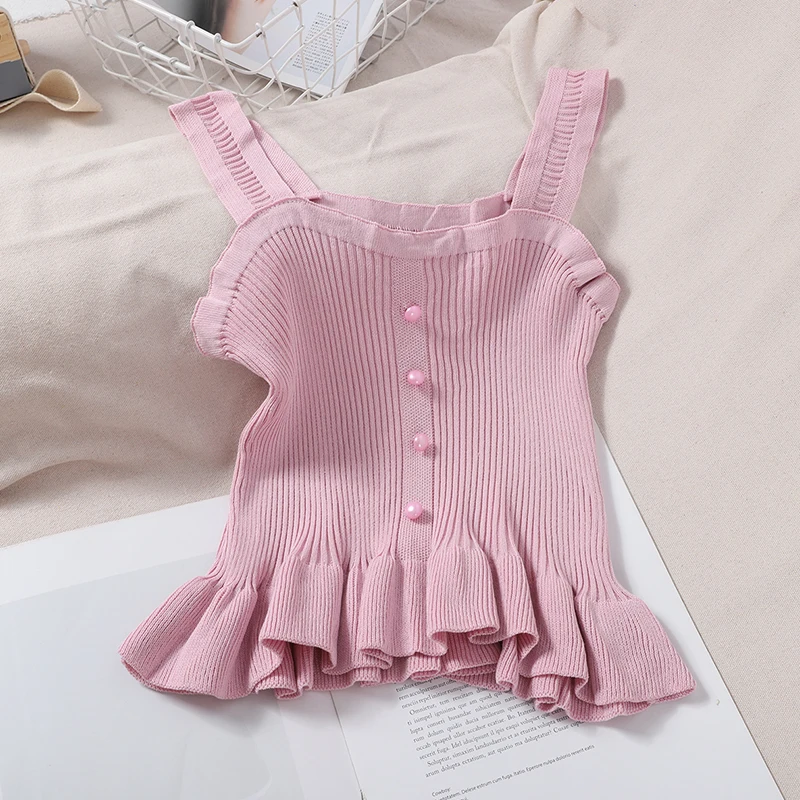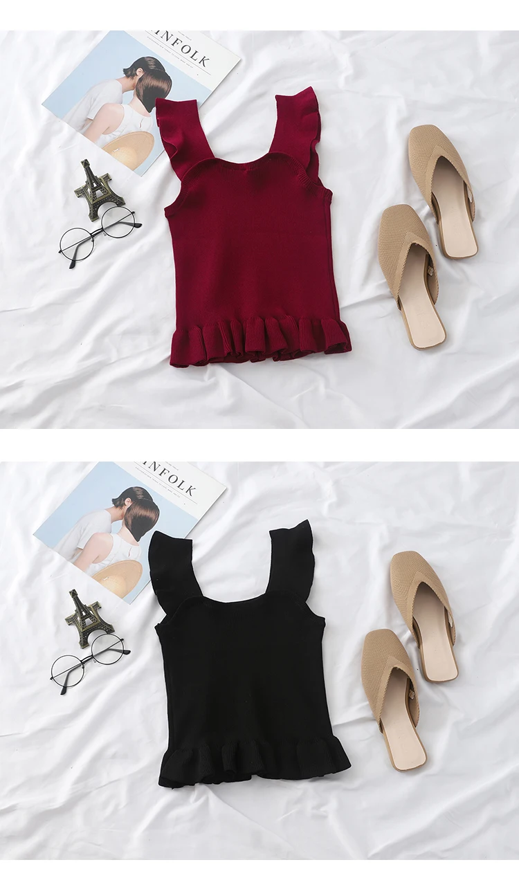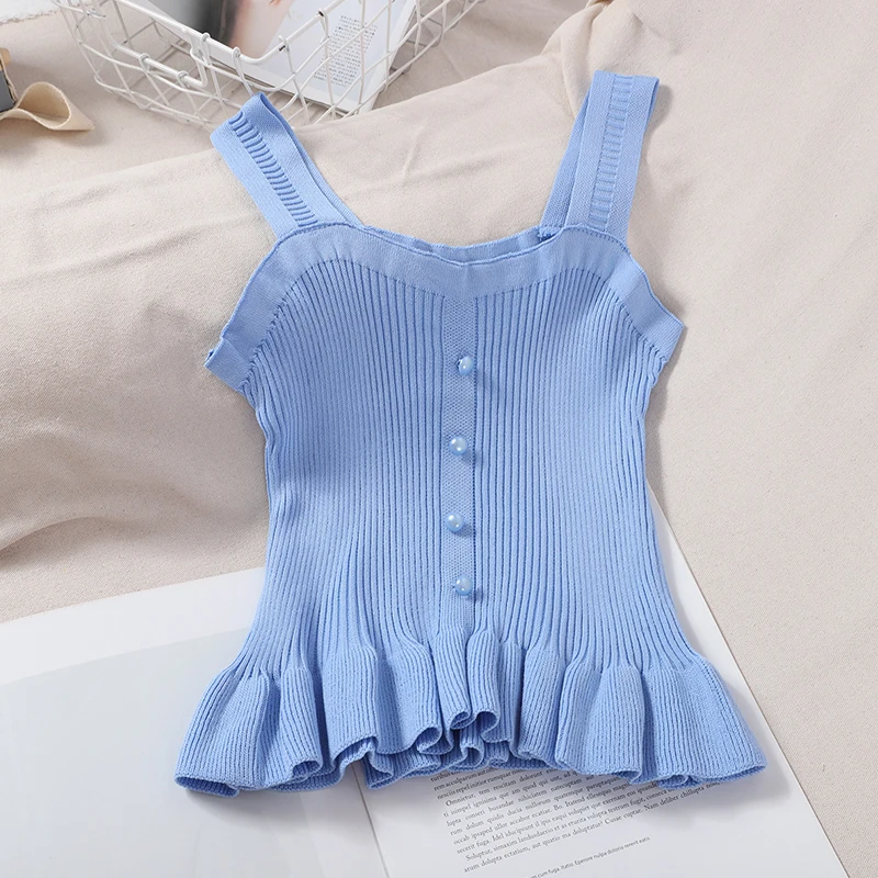 Отзывы о Топ OUMEA женский укороченный на пуговицах с оборками спереди милая майка баской
