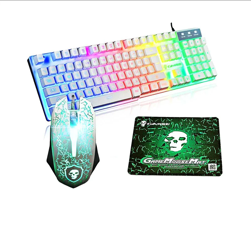 Комплект проводной игровой клавиатуры и мыши со светодиодной подсветкой, 2400DPI + коврик для мыши с радужной подсветкой, комплект для ПК, ноутбука, компьютера, геймера
