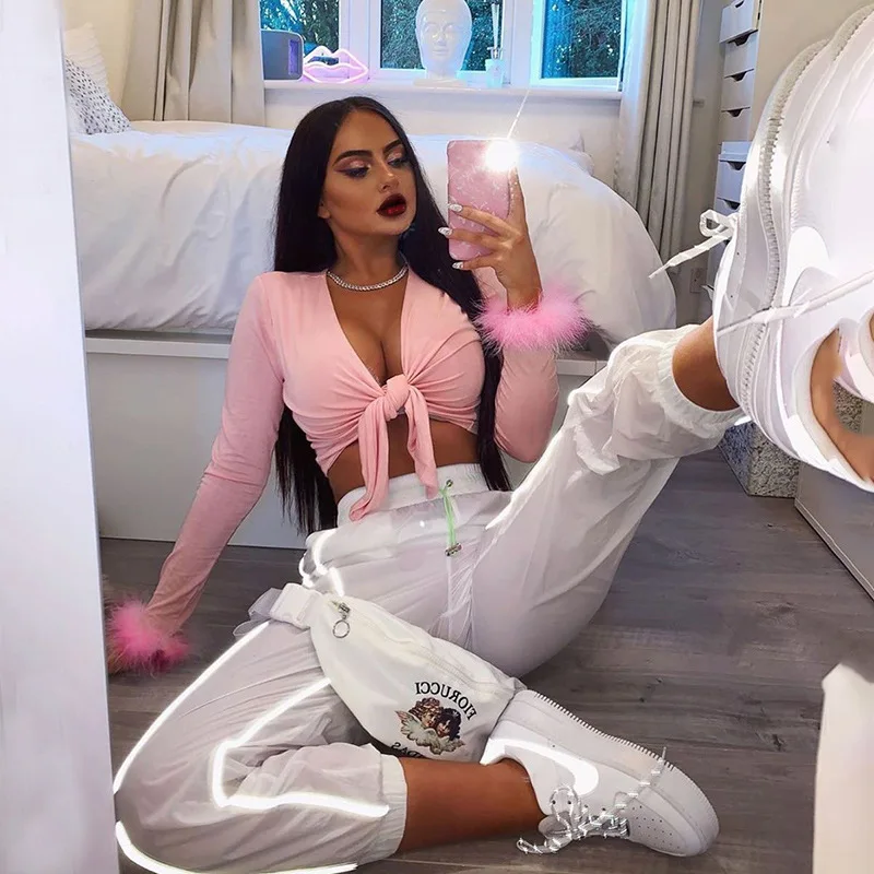 Отзывы о Ruilee fur long sleeve lace up T-shirt women v neck sexy Fluffy crop top 2020 autumn winter streetwear t shirt casual clothes | Мать и