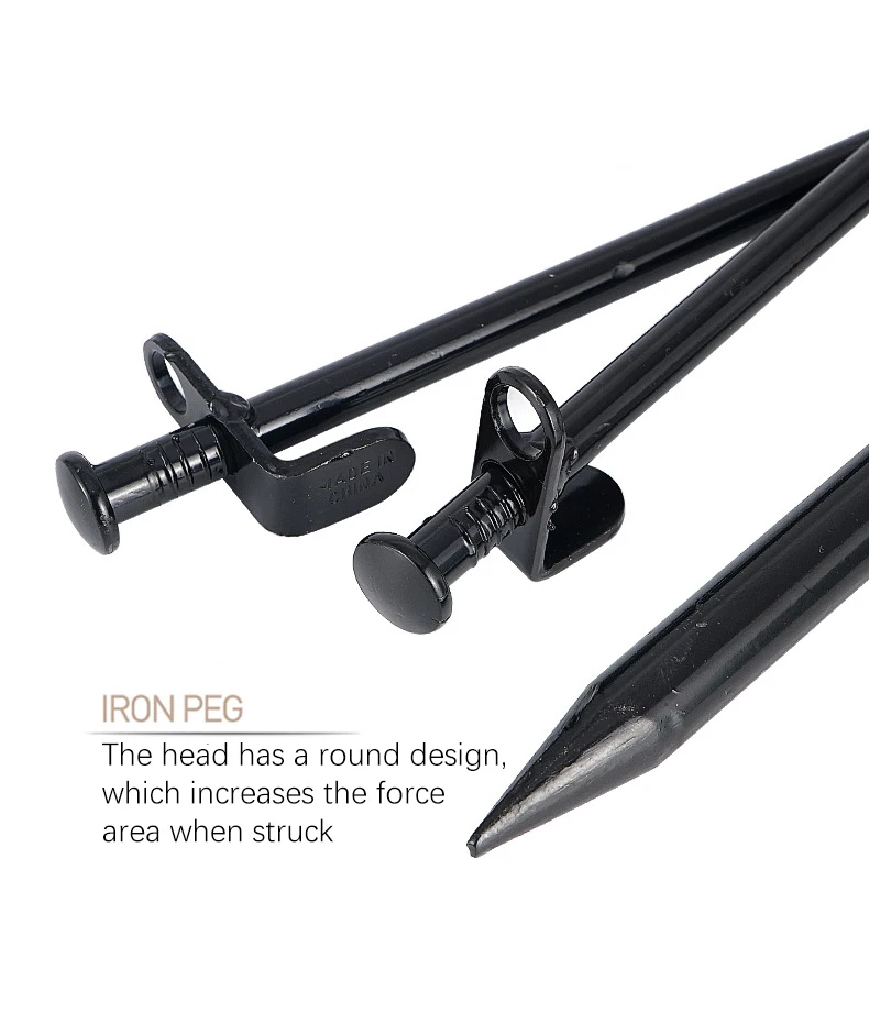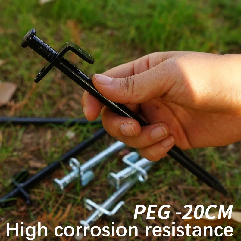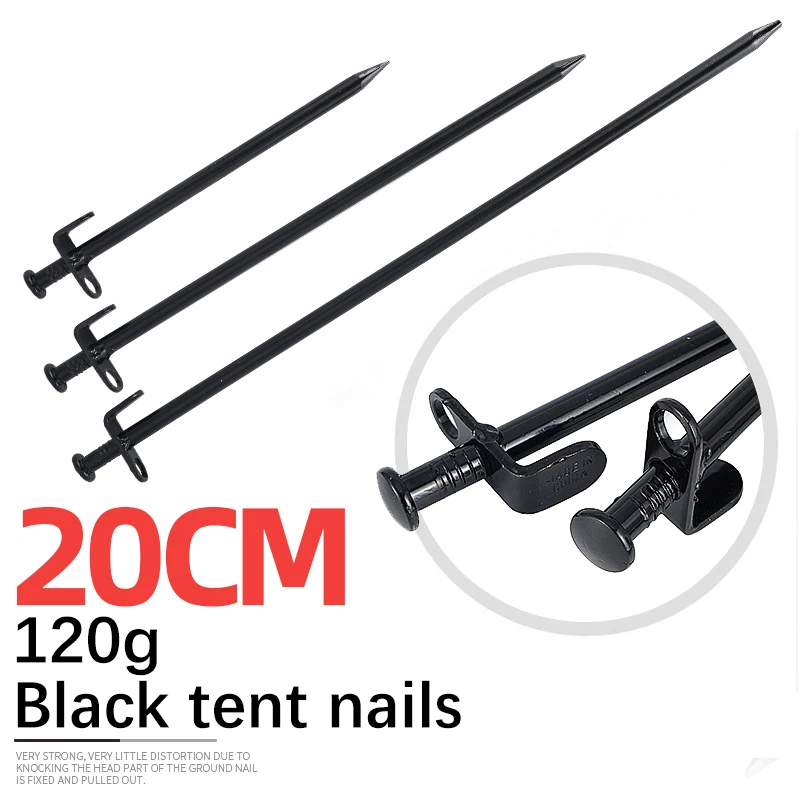 Уличный стальной гвоздь Материал: сталь Цвет: черный Размер: 20 см Вес: 120 г Особенности: 1. Изготовлен из 100% сталь материал, прочный, с сильной стабильностью 2. Нелегко деформировать, идеальные инструменты для закрепления большого тента 3. Идеально подходит для крепления палаток, навесов, брезентов, озеленения или садовых растений 4. Высокопрочная сталь и железо, прочная, стойкая к ржавчине. 5. Закругленная головка, предназначенная для облегчения ковыла. Круглое отверстие, легко вытягивать гвозди, также можно завязывать веревку. Стальные гвозди оптимальной прочности для установки большой палатки на открытом воздухе. Посылка 2 * гвозди для палатки
