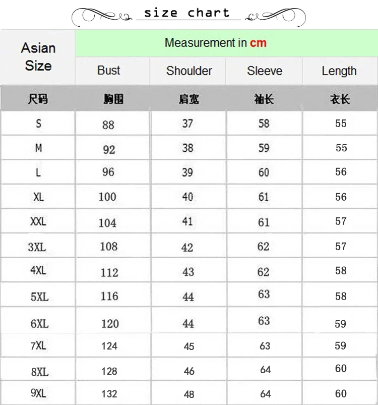 Размер: S, M, L, XL, 2XL, 3XL,4XL,5XL,6XL,7XL,8XL,9XL