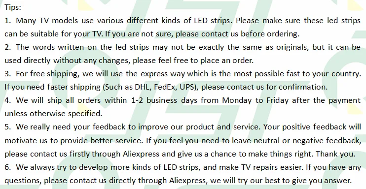 1 комплект = 8 шт. = 8Bar5LED = A телевизор