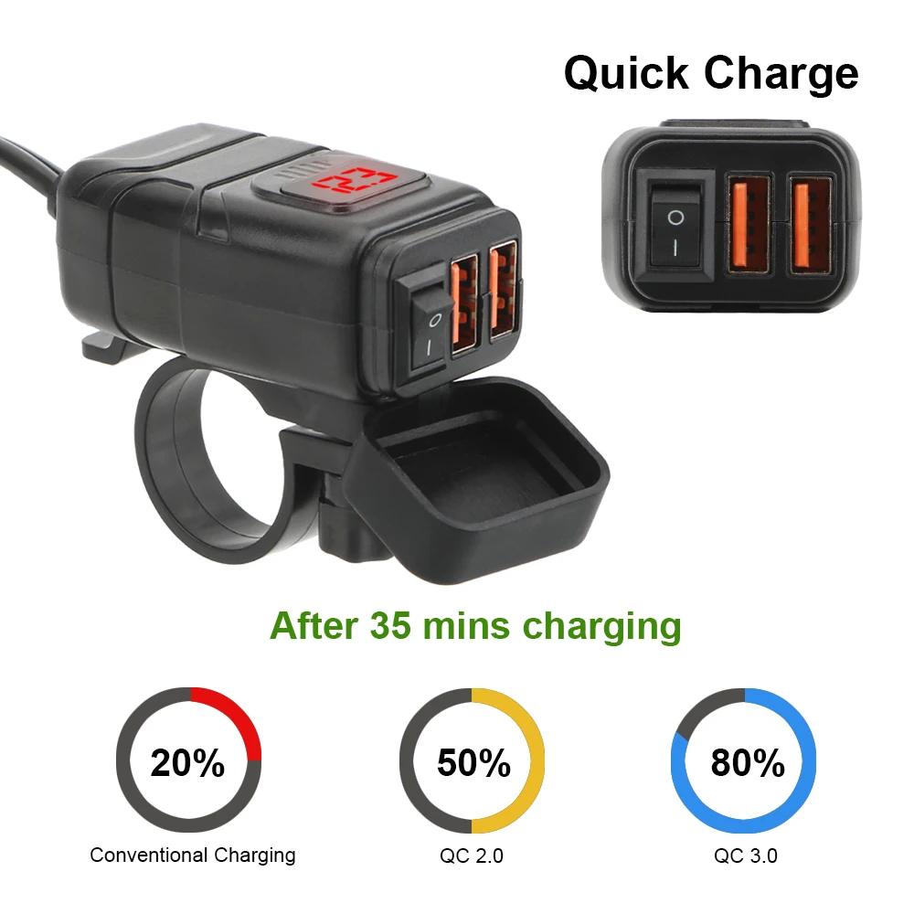 Отзывы о Зарядное устройство для мотоцикла LEEPEE QC 3 0 с двумя USB-портами | Автомобили и