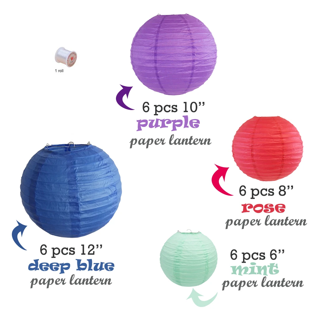 Разные размеры-в каждой упаковке 24 бумажных фонарика