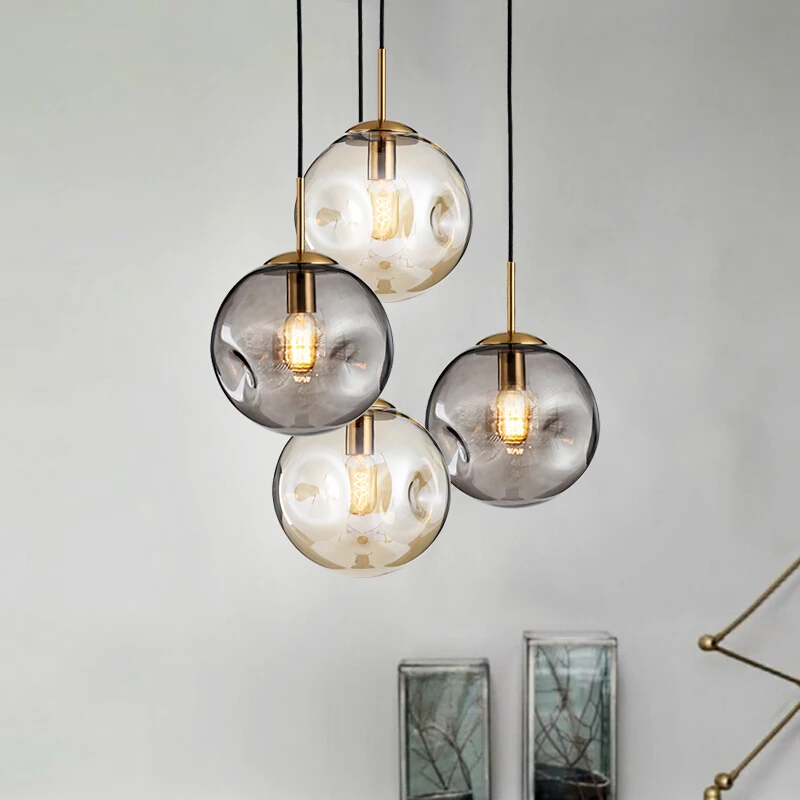 Современный Лофт стеклянный шар подвесной светильник светодиодный E27 скандинавский подвесной светильник с 2 цветами для гостиной ресторана спальни лобби кухни