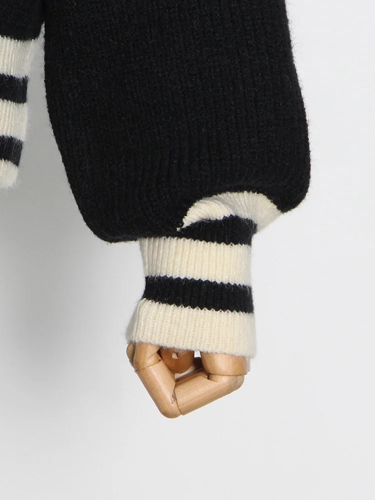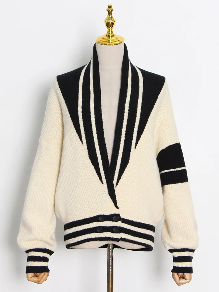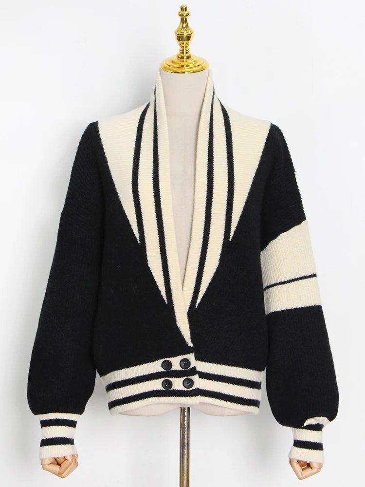 Отзывы о CHICEVER лоскутное пальто для женщин v-образный вырез фонарь длинный рукав полосатый