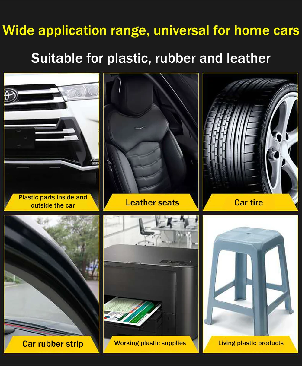 Он также может использоваться в различных применениях, таких как автомобильные бамперы, джипы или грузовики Chevrolet, с большим количеством пластика, плюс ваш RV или мотоцикл! Он также может использоваться в качестве восстановления пластмассы или ухода за кожей, таких как автомобильные интерьеры и автомобильные наружники, пластиковые детали восстановленных автомобилей, мебель, кожгалантерея, обслуживание, глазирование, дезинфекция, ремонт царапин, замедление старения, и повышение блеска. Выглядит как просто автомобильный продукт, но этот особый рецепт принесет все, что сделано из пластика!