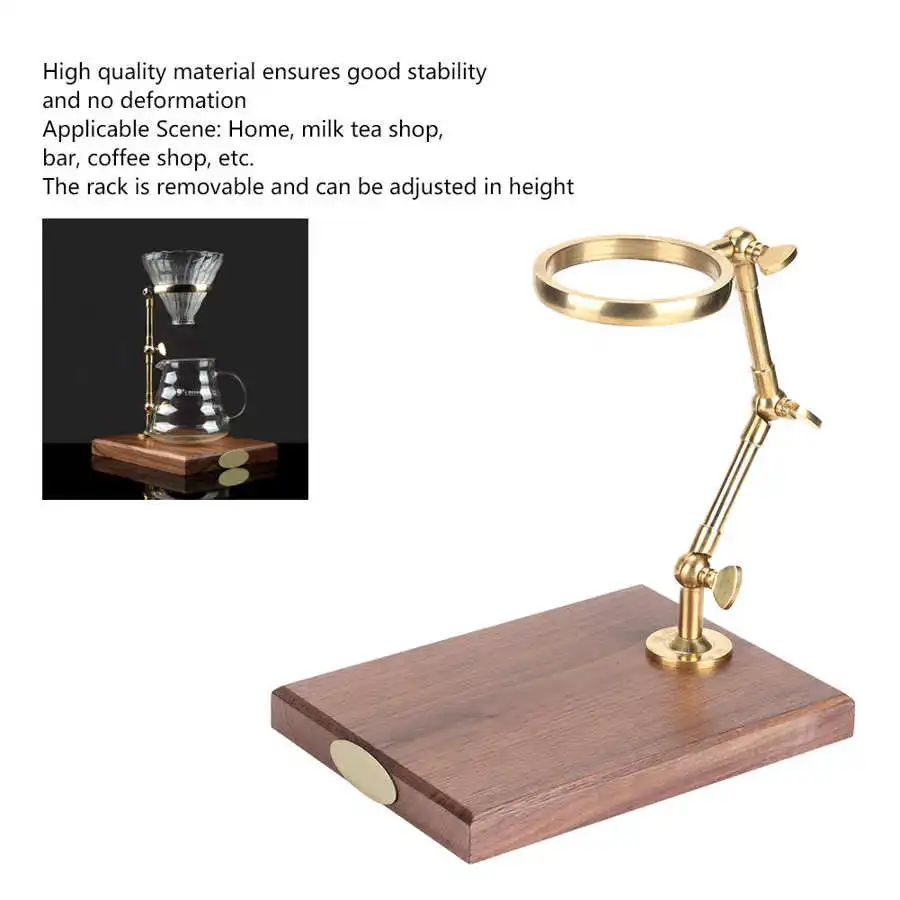 Медная кофейная подставка для фильтра, чайный горшок, держатель для чашки, подставка для фильтра, полка с деревянной основой, регулируемая высота, аксессуары для чая