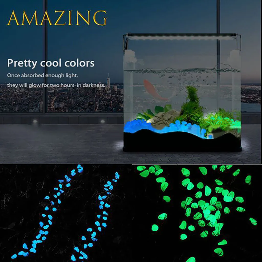 Блеск в темноте: около 100 штук нетоксичных блестящих смоляных гальек в пакете. Эти гальки поглощают достаточно солнечный светильник или другой искусственный светильник в течение дня, чтобы светиться до 3-6 часов ночью или в любой другой темной среде. Они могут непрерывно поглощать светильник и светиться.