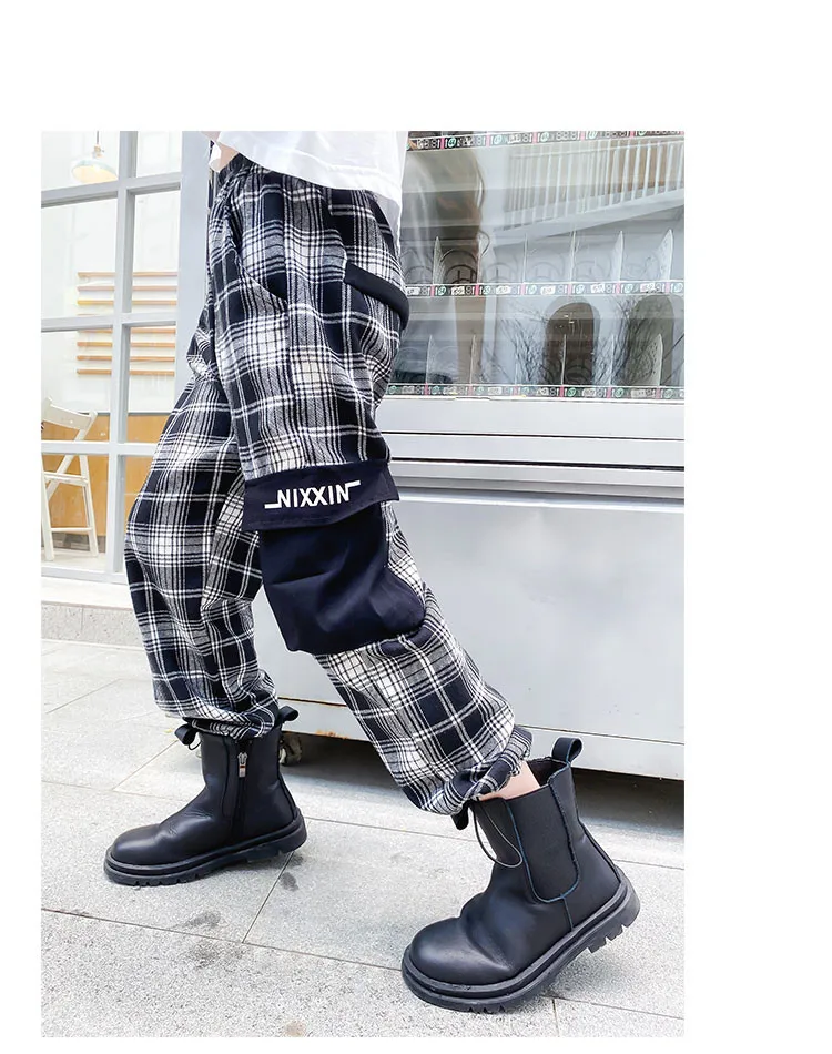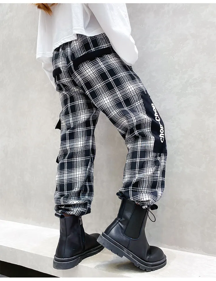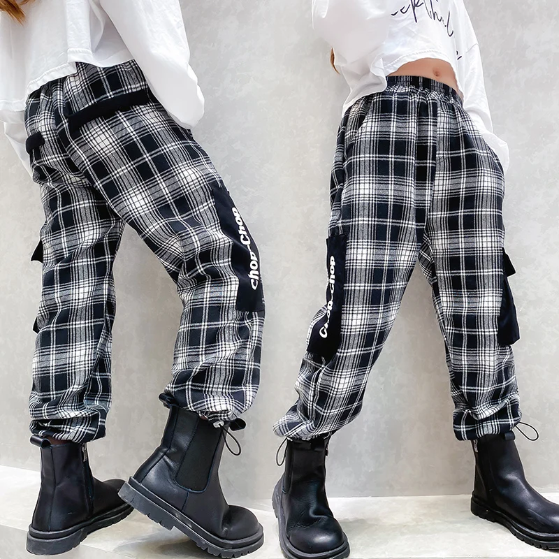 Детская одежда для больших девочек; Брюки-карго; Хлопковые шаровары в клетку с несколькими карманами; Штаны для бега; От 3 до 13 лет