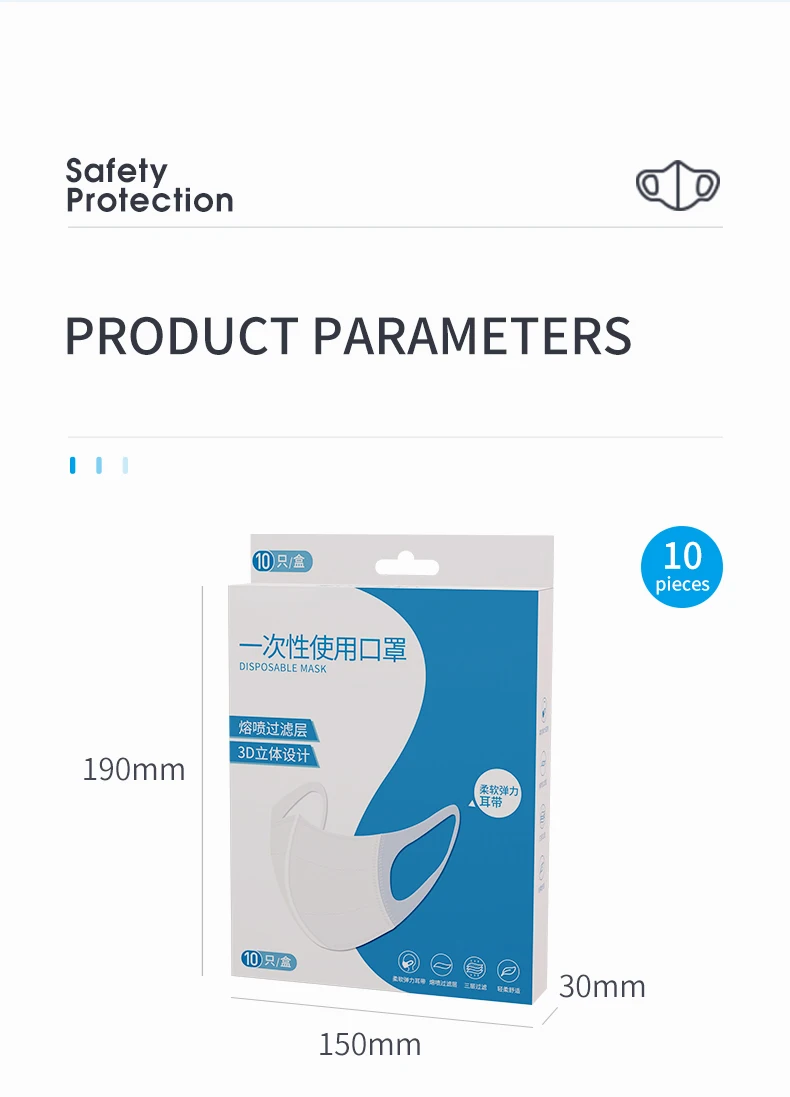 Мы фабрика по производству масок. 300 сотрудников производят 100 миллионов масок в месяц. Большое количество запасов и принимаем Оптовые заказы. Если маски оптом, пожалуйста, свяжитесь со службой поддержки клиентов. Маски плотно прилегают к лицу и носу, не зирая на нос. Эластичная резинка для ушей удобна. Спецификация: Цвет: синий, розовый, белый Размер маски: 175 мм * 95 мм. Посылка маски размер: 190 мм * 150 мм * 30 мм Материал: трехслойная Нетканая ткань, хлопок и расплавленная ткань. Посылка: 10 шт., 50 шт., 100 шт. Особенности продукта: 1. Новая ткань из вспененного и нетканого материала, мягкая и чистая, удобная и дышащая 2. Процесс бесшовной вязки 3. 3D стерео дизайн, больше дышащего пространства на лице 5. Многослойная защита для вашего дыхательного здоровья Гарантия быстрой доставки: 1 около 7-15 дней в Испанию, Францию и Великобританию по AliExpress стандартной доставкой, И 20-30 дней в другие страны Европы. 2. Экспресс-Сервис доступен, если ваш заказ срочный