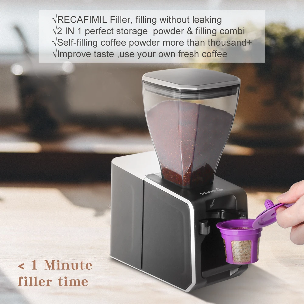 Наполнитель для кофейного порошка мощностью 110 г имеет хорошую функцию хранения, наполняя около 9 чашек кофе сразу. Вам не нужно открывать кофейную емкость каждый раз, когда вы хотите заполнить кофейную капсулу, сохраняя левый кофейный порошок с хорошим вкусом в своей кофейной коробке или сумке.