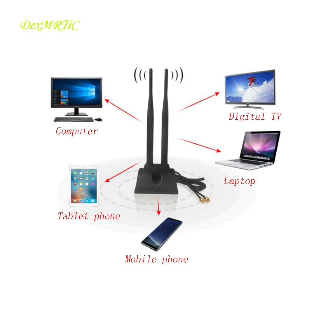 Спецификация:Частота: 2,4G/5,8GКоэффициент усиления: 5dbiS.W.R ≤ 1,5Сопротивление: 50 ΩНапряжение: 5 ВРазмер основания: 2,95*3,15 дюймовАнтенна высота: 8,5 Дюймов (21,6 см)Длина кабеля: 120 см/100 смТип разъема: 2x RP SMA штекер с гнездомКрепление: присоска для столаПоддержка: MU-MIMO-bluetooth 5,0Передача данных происходит быстрее и дальше, сигнал более стабильный.Не нужно водить, подключать и играть.