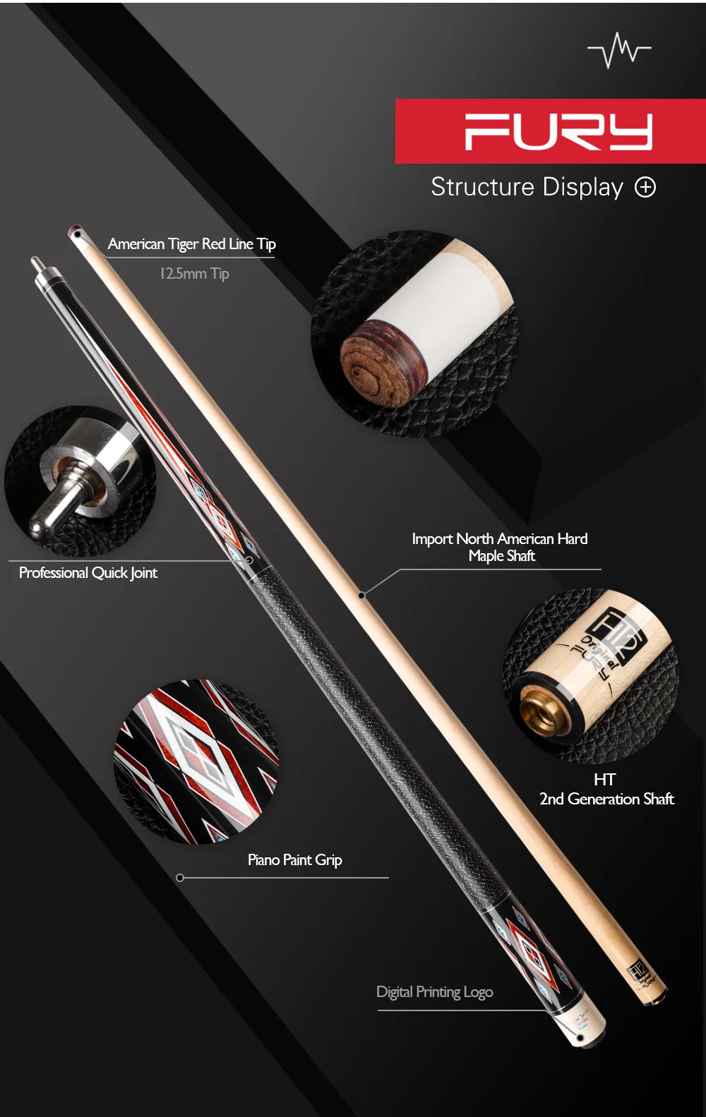 Отзывы о FURY DD-1/3 Pool Cue 12.5mm Tiger Tip HT2 Evolution Maple Shaft XTC Ferrule Quick Joint Billiards Handmade Lrish Line Stick Kit | Спорт и