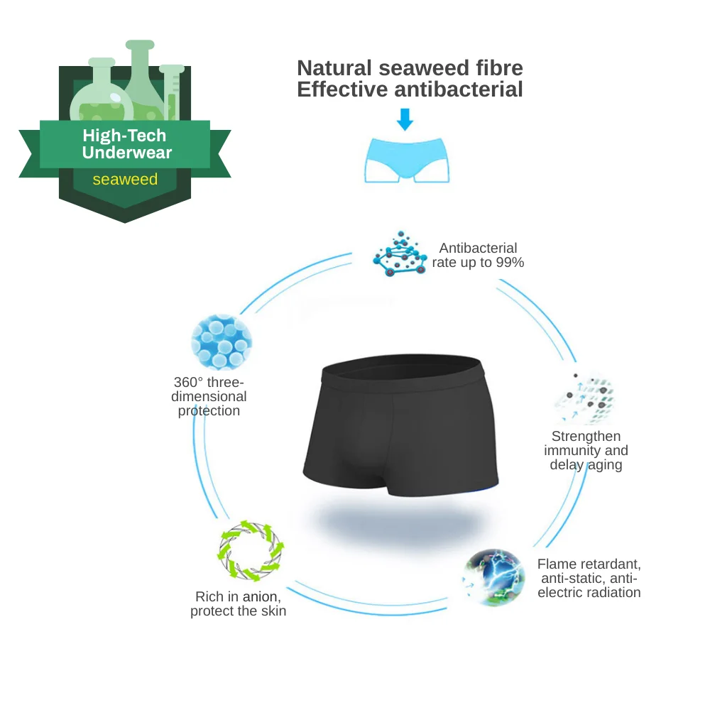 Отзывы о 2Pcs Unique High-Tech Sports Seaweed Fabric Antibacterial Underwear Panties Men Boxers calzoncillos Мужское нижнее белье -