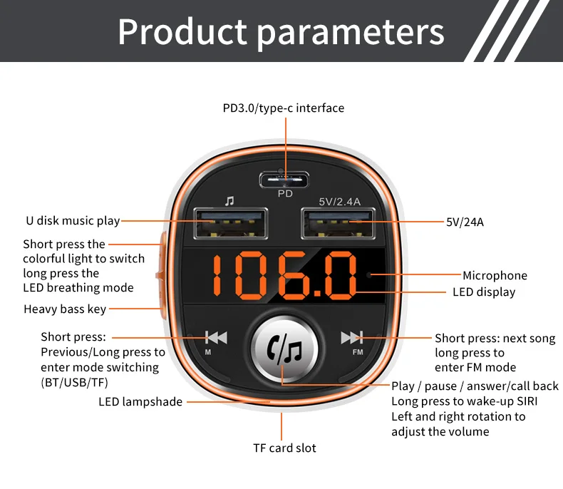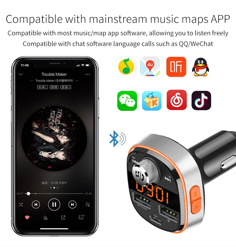 Отзывы о USLION Wireless Bluetooth Car Charger FM MP3 Player color Led PD3.0 Fast Kit Transmitter Dual USB Handsfree | Мобильные телефоны и