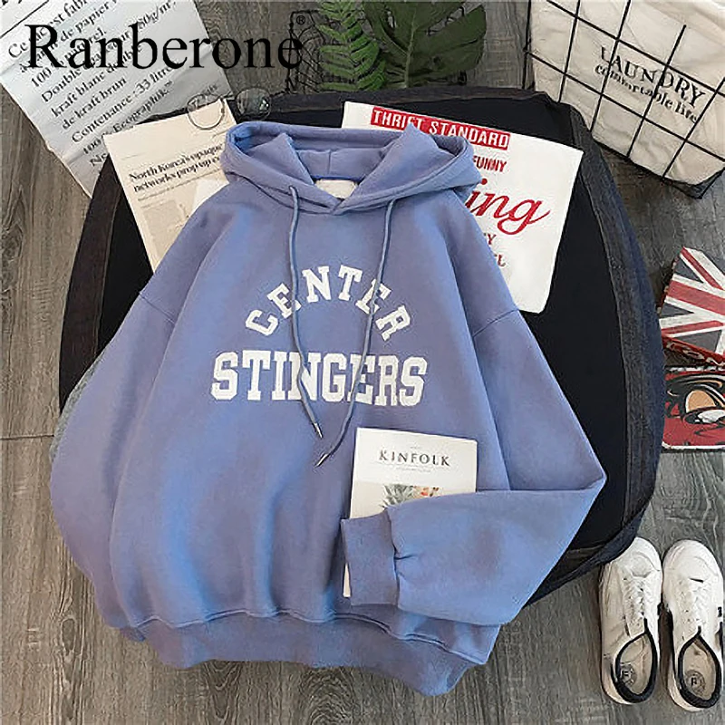 Ranberone 2020 толстовки WomenTops; Одежда с принтом и длинным рукавом, с подкладкой, с капюшоном, пуловер мягкие домашние тапочки из хлопка для женщин свободные кофты