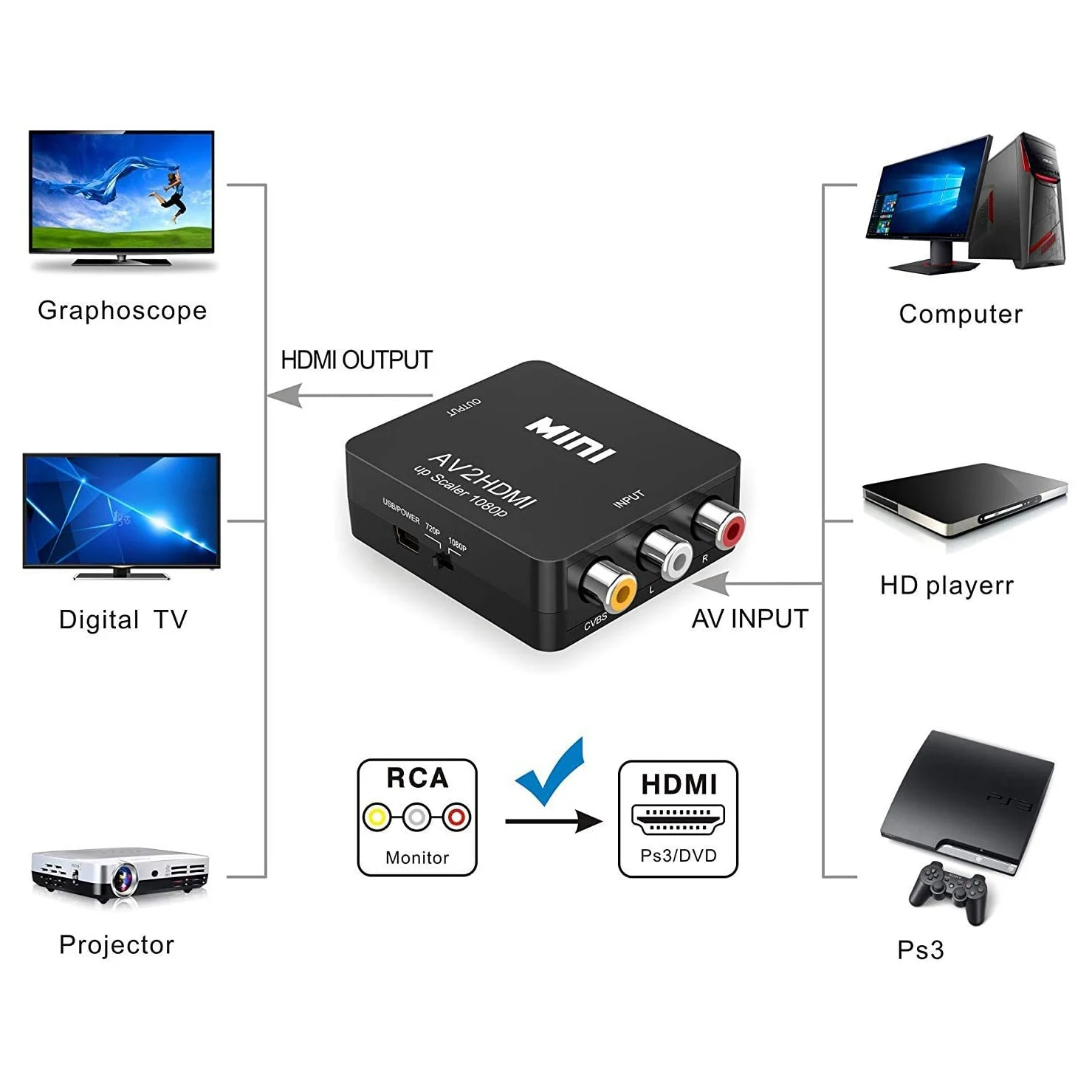 Отзывы о RCA в HDMI AV конвертер 1080P Мини CVBS видео o адаптер PAL/NTSC для ТВ/ПК/PS3/ STB/ VHS | Электроника